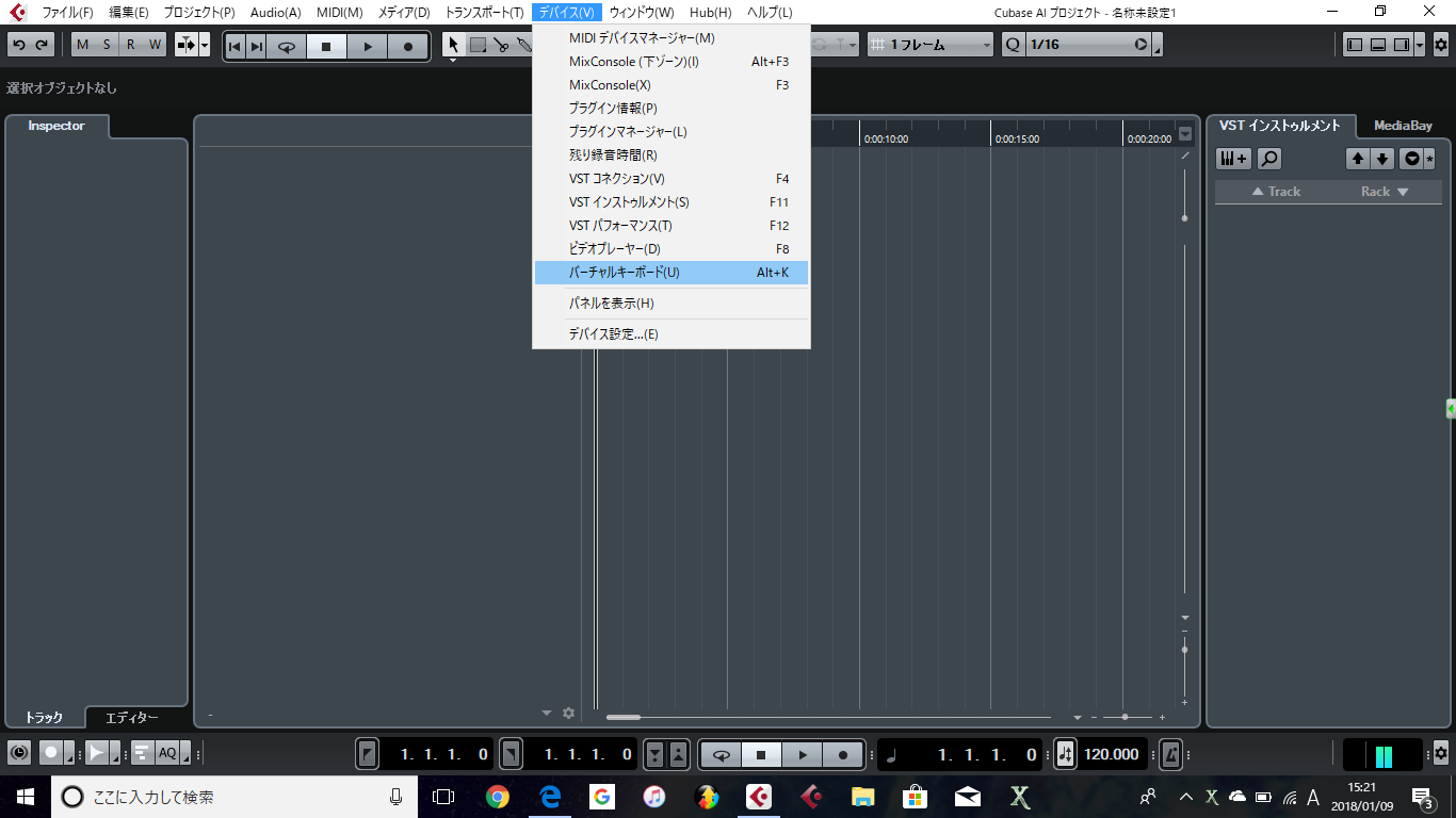 Cubase AI9 でバーチャルキーボードを使いたい。表示させる方法!