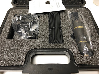 説明書(日本語ではない)が付属しており、マイク、ケーブル、ショックマウントが付属。