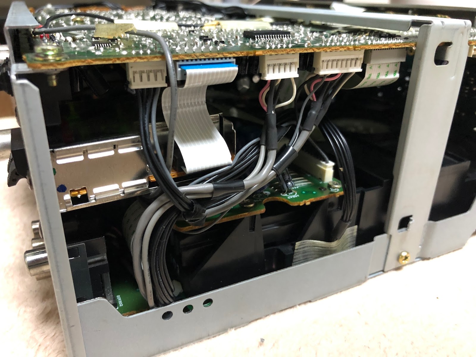 トップの大きな基盤を外すために、まずはケーブル外し…