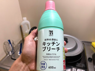 今回はこのキッチンブリーチを使いましたが、成分に『次亜塩酸ナトリウム』が入っていることが重要です。