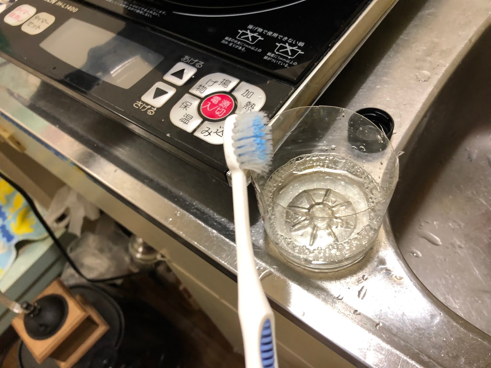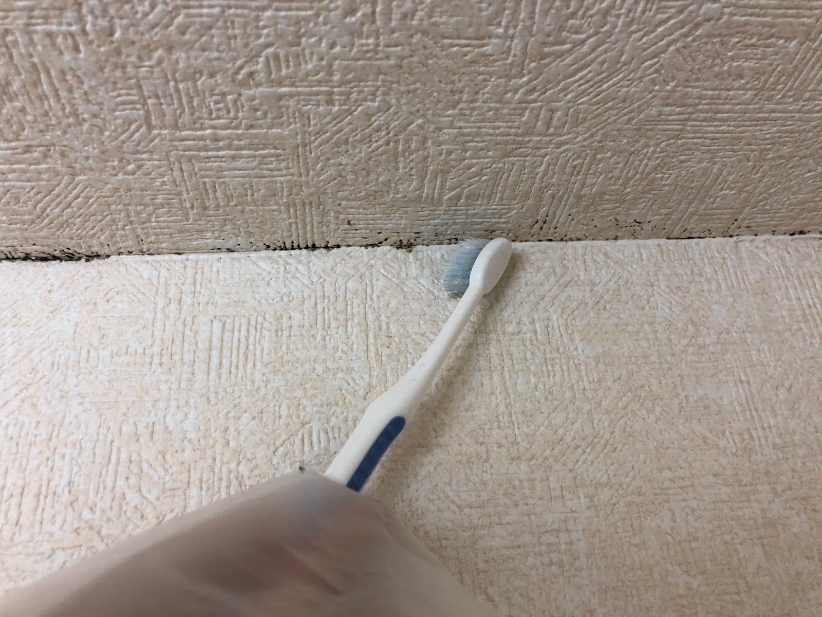 まずは歯ブラシを使って、かびるんるんを軽く苦しめます!