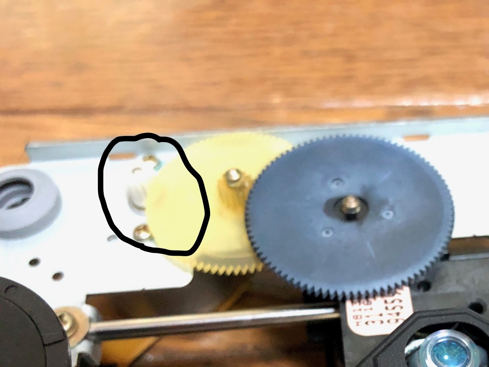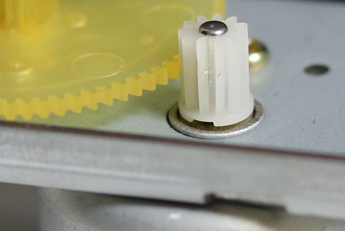 ピックアップを動かすモーターに付いているプラスチック製のギア。
