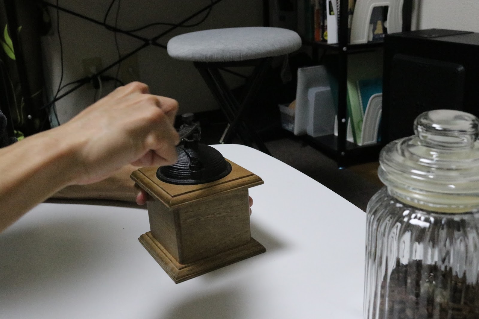 コーヒーミルに豆をテキトーな量入れまーす!