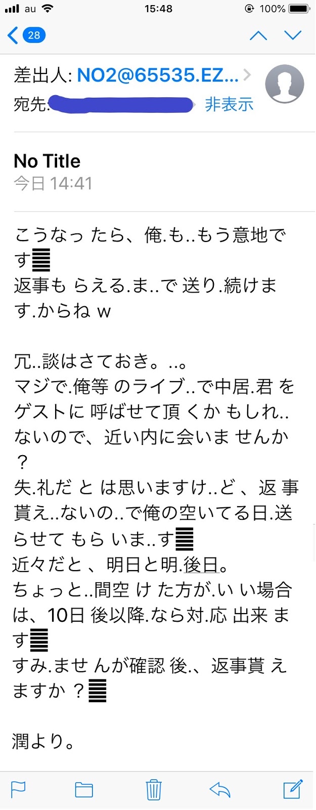とりあえずこういう迷惑メールに返信するとロクナコトがなさそうなのでやめておきます(*´з`)