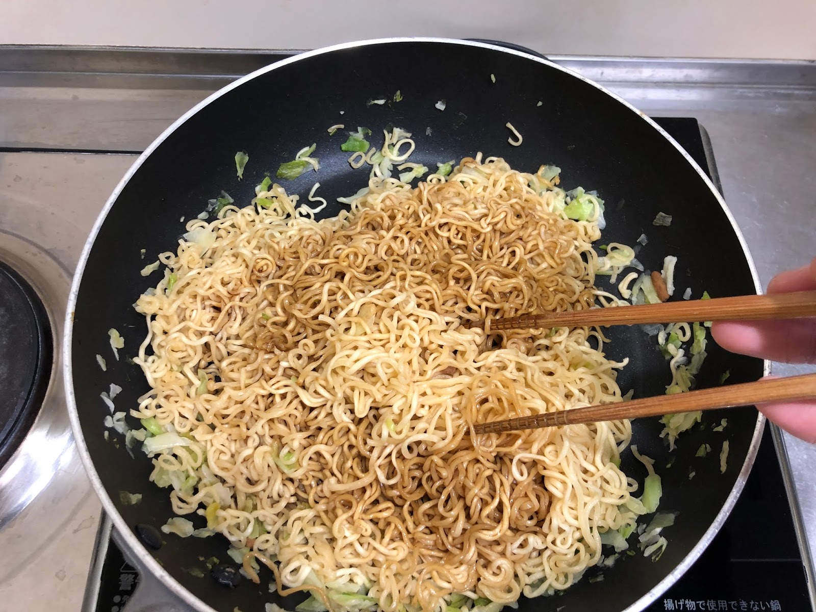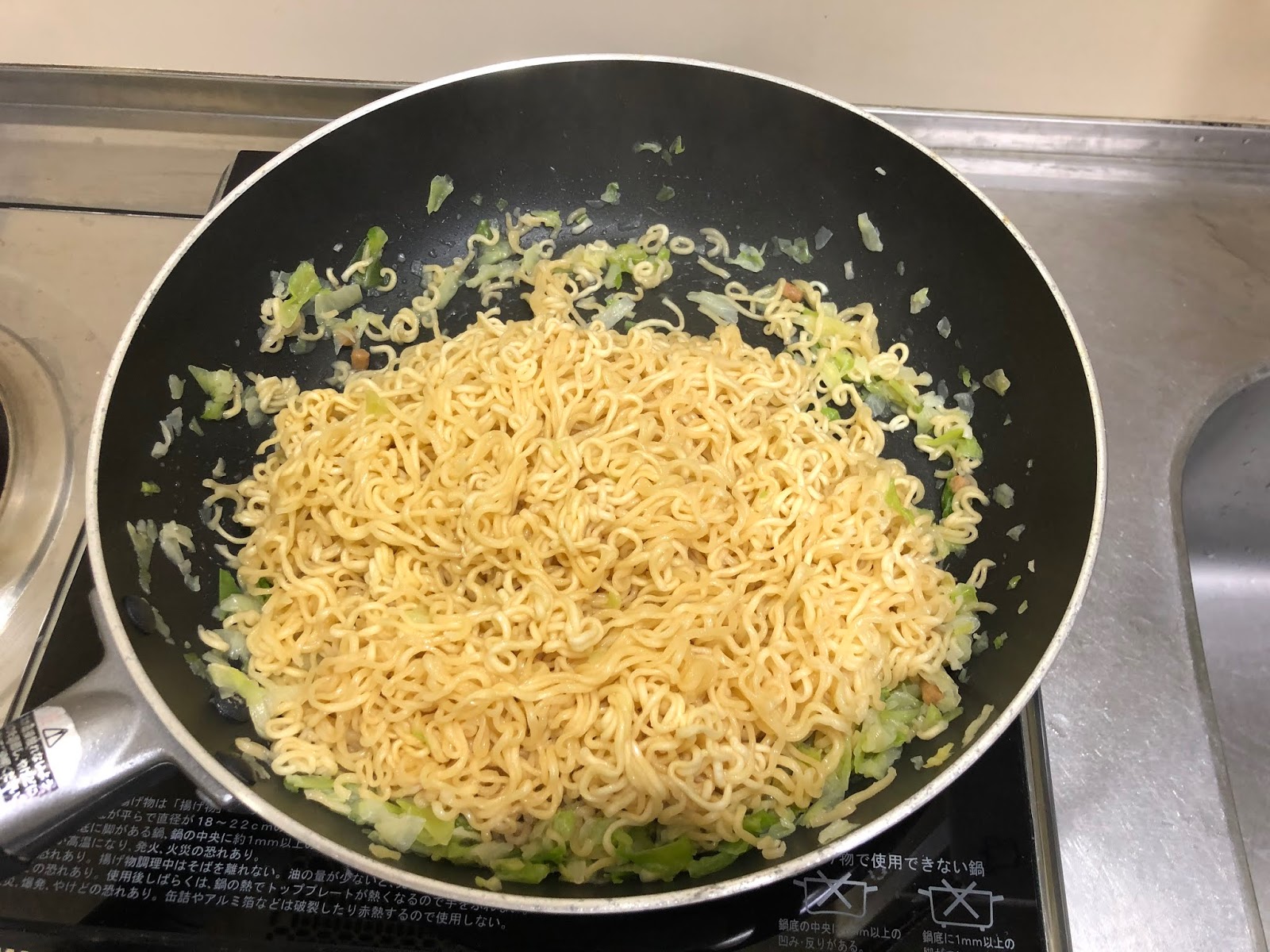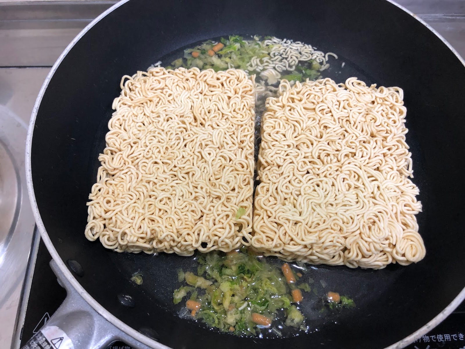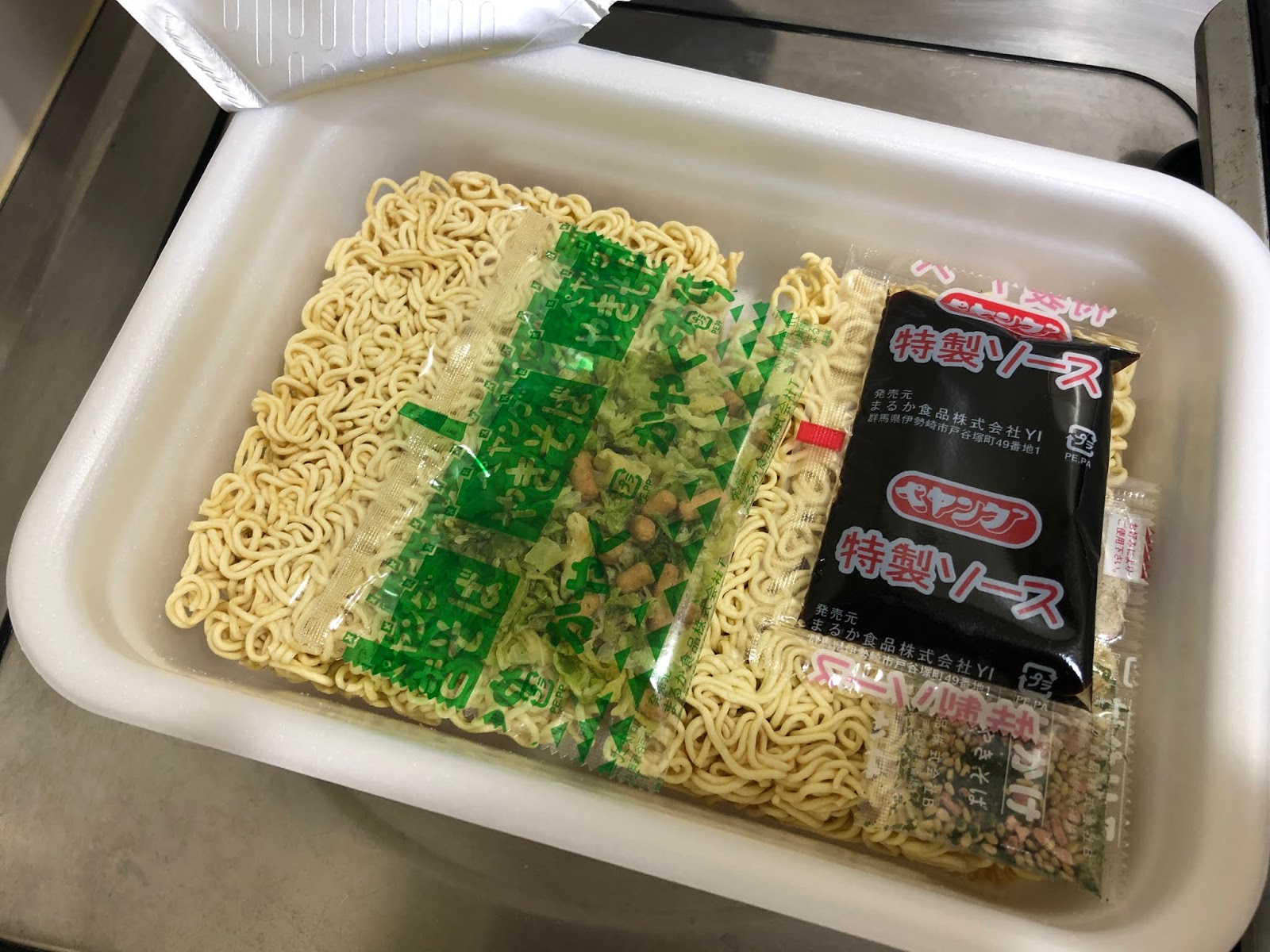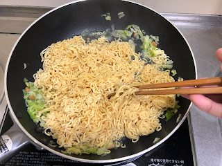 インスタント焼きそばなので通常はお湯を注いで~