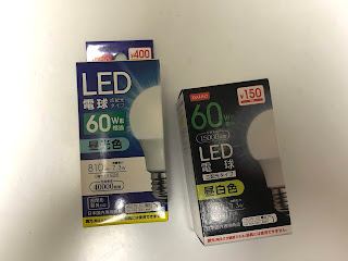 ダイソーの低価格なLED電球60W形。150円と400円の2種類を比べてみた!