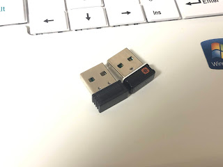 ロジクールの無線キーボード(K230)のUnifyingレシーバーと比べてみても大きさはほぼ同じ…(=゚ω゚)ノ